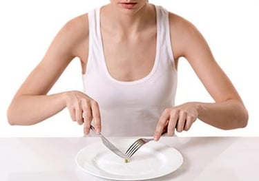 Restriction alimentaire, peur de grossir, sensation d'être gros(se) même si ce n'est pas le cas. Souvent accompagné de vomissements, ou de prise de laxatifs.